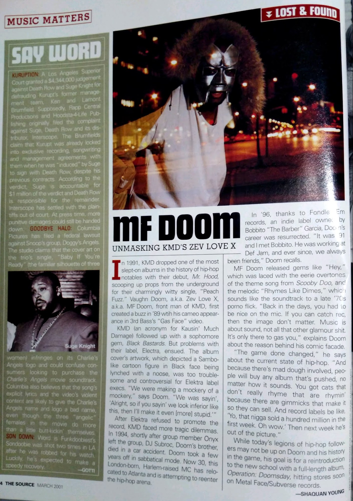 Shadows of Tomorrow: Shaquan Young's First MF DOOM Interview In A Major Mainstream Publication (The Source, MAR 2001 #138)